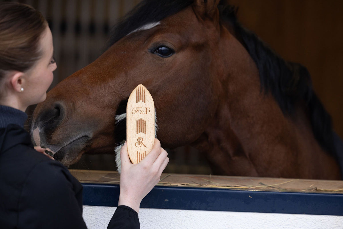 Fritz & Frodewin steht für deutsche Handwerkskunst: Bürsten aus FSC-zertifiziertes Holz und hochwertige Borsten, sorgfältig bestückt und langlebig im Einsatz – für Pferd und Hund. Unsere Bestseller kombinieren kräftige Reinigung mit edlem Glanz; besonders sanfte Modelle sind ideal für Kopf und empfindliche Partien. Auf Wunsch personalisieren wir deine Bürste per Gravur – ein Unikat mit Bedeutung.