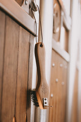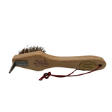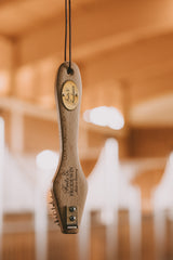 Kraftvoll und edel zugleich: Gustav kombiniert 100 % langlebige Naturfasern mit einem hochwertigen Edelstahl-Kratzer. So werden selbst hartnäckige Verschmutzungen am Huf mühelos entfernt.