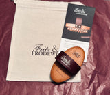• Edler Ledergurt in bordeaux mit typisch goldenem „Fritz & Frodewin mit Sarah Panje" Aufdruck versehen