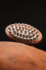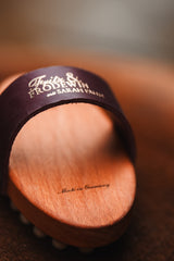 • Massagebürste mit Holznoppen, die durch das elastische Gummikissen bei Widerstand nachgeben und für einen angenehmen Massageeffekt sorgen